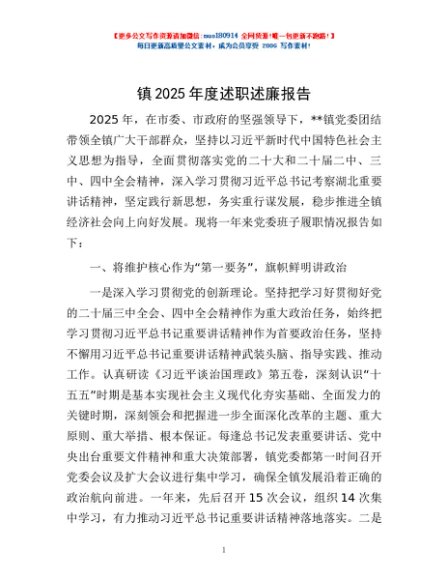 / 镇2025年度述职述廉报告