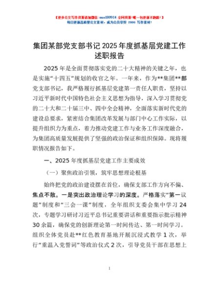 / 集团某部党支部书记2025年度抓基层党建工作述职报告