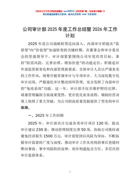 / 公司审计部2025年度工作总结暨2026年工作计划