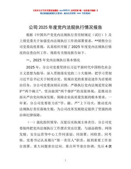 / 公司2025年度党内法规执行情况报告