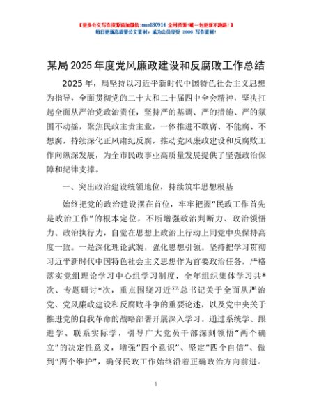 / 某局2025年度党风廉政建设和反腐败工作总结
