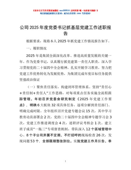 / 公司2025年度党委书记抓基层党建工作述职报告