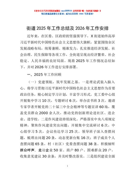/ 街道2025年工作总结及2026年工作安排