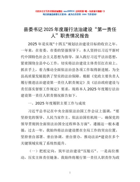 / 县委书记2025年度履行法治建设“第一责任人”职责情况报告