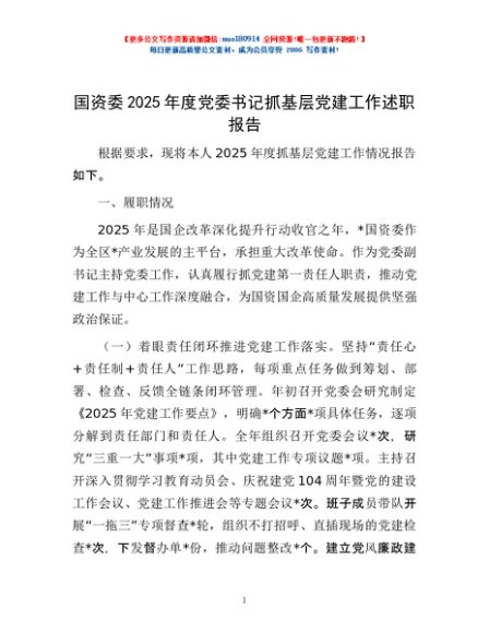 / 国资委2025年度党委书记抓基层党建工作述职报告