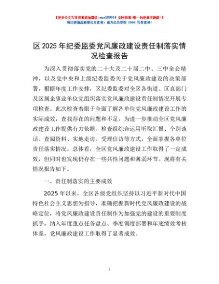 / 区2025年纪委监委党风廉政建设责任制落实情况检查报告