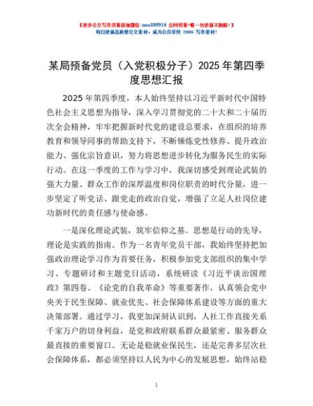 / 某局预备党员(入党积极分子)2025年第四季度思想汇报