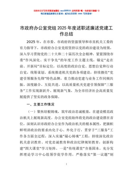 / 市政府办公室党组2025年度述职述廉述党建工作总结