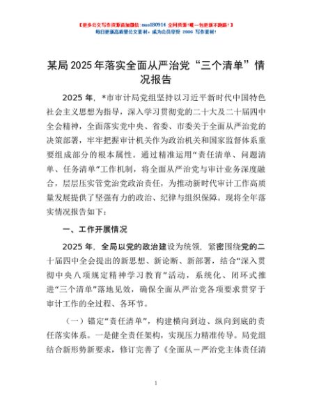 / 某局2025年落实全面从严治党“三个清单”情况报告
