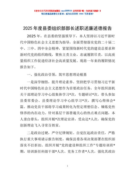 / 2025年度县委组织部部长述职述廉述德报告