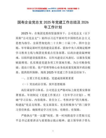 / 国有企业党总支2025年党建工作总结及2026年工作计划