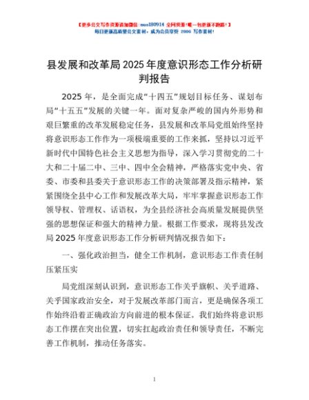 / 县发展和改革局2025年度意识形态工作分析研判报告