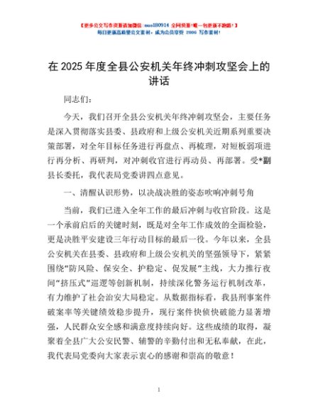 / 在2025年度全县公安机关年终冲刺攻坚会上的讲话