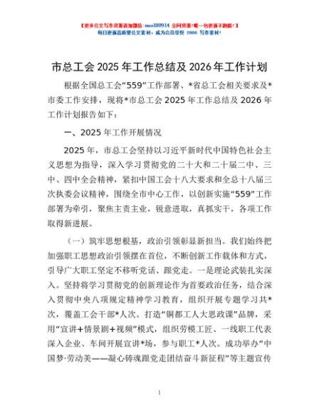 / 市总工会2025年工作总结及2026年工作计划