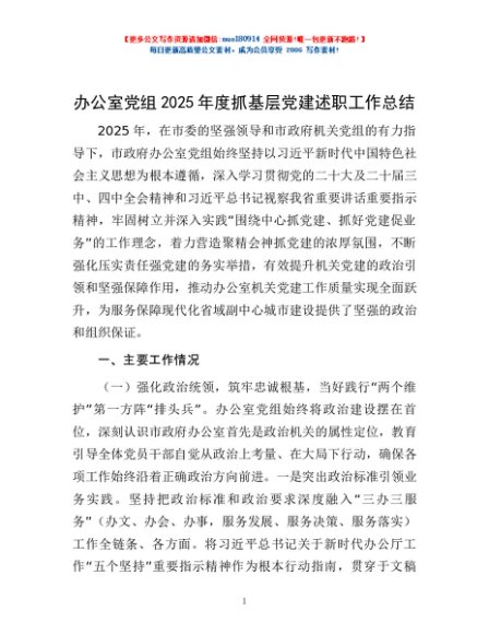 / 办公室党组2025年度抓基层党建述职工作总结