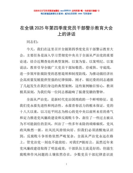 / 在全镇2025年第四季度党员干部警示教育大会上的讲话