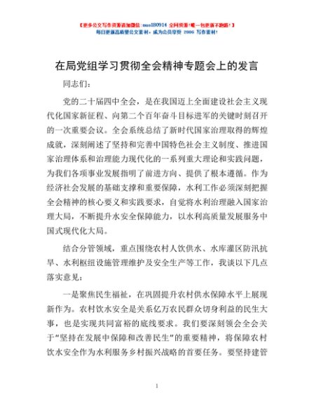 / 在局党组学习贯彻全会精神专题会上的发言