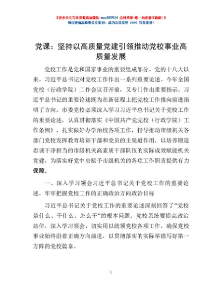 / 党课:坚持以高质量党建引领推动党校事业高质量发展
