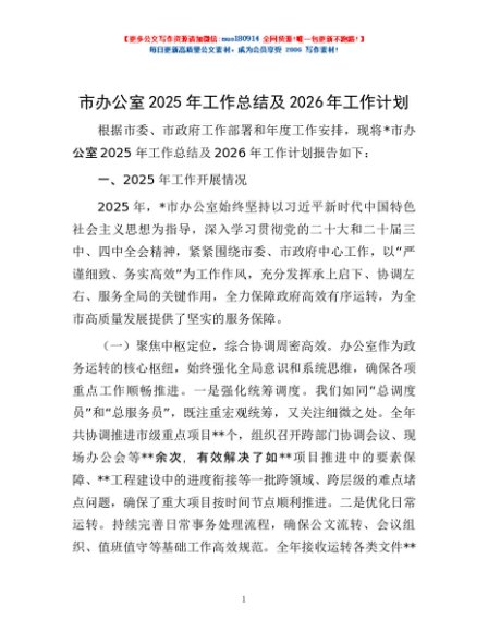 / 市办公室2025年工作总结及2026年工作计划