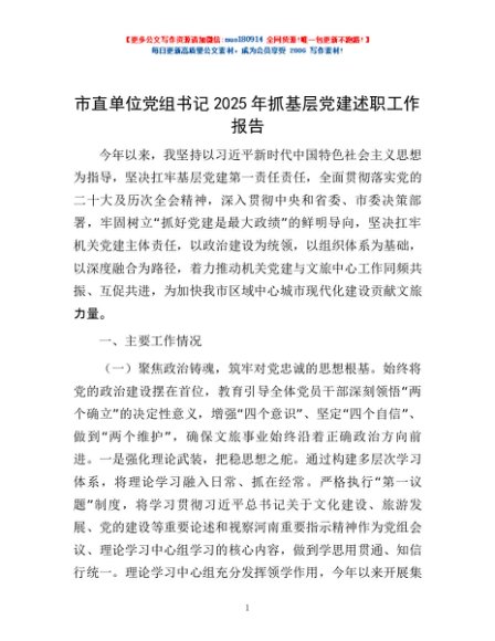 / 市直单位党组书记2025年抓基层党建述职工作报告