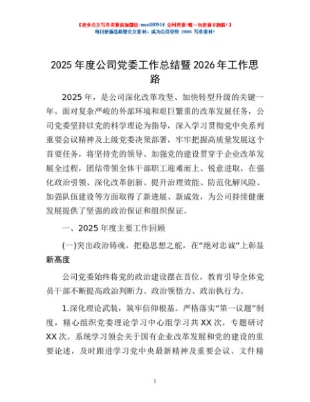 / 2025年度公司党委工作总结暨2026年工作思路