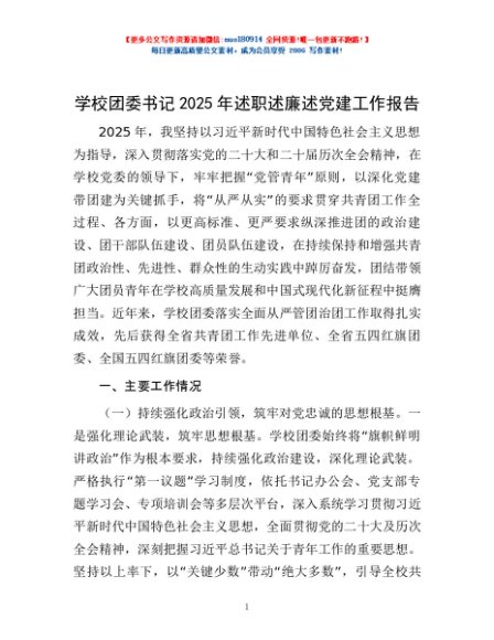 / 学校团委书记2025年述职述廉述党建工作报告
