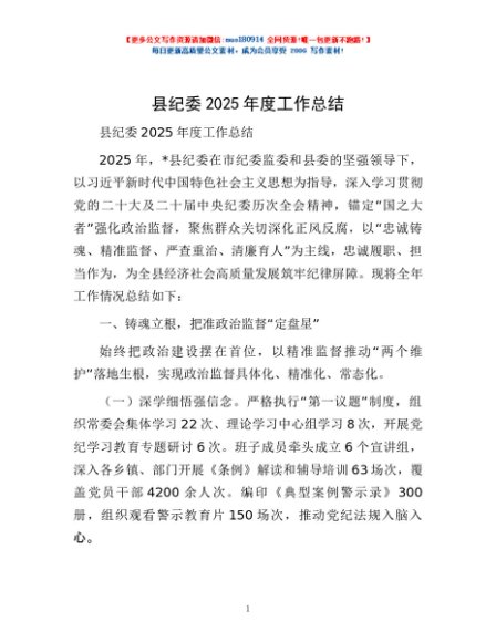 / 县纪委2025年度工作总结