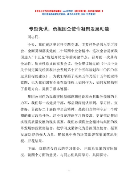 / 专题党课:勇担国企使命 凝聚发展动能