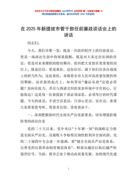 / 在2025年新提拔市管干部任前廉政谈话会上的讲话