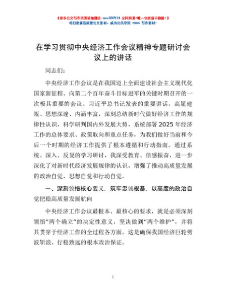/ 在学习贯彻中央经济工作会议精神专题研讨会议上的讲话