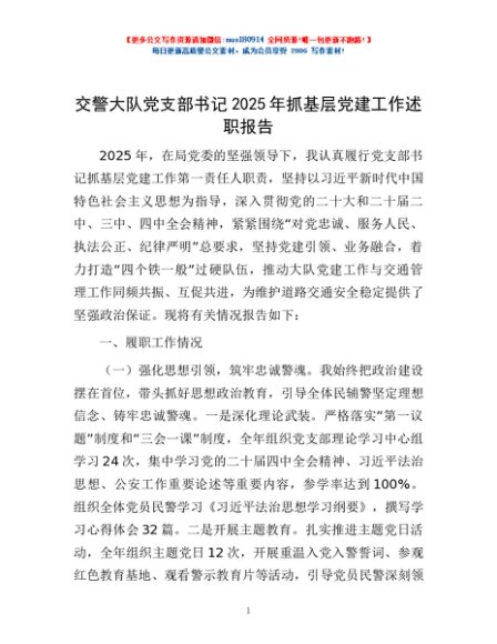 / 交警大队党支部书记2025年抓基层党建工作述职报告