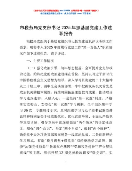 / 市税务局党支部书记2025年抓基层党建工作述职报告