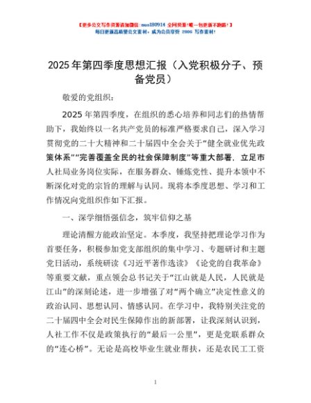 / 2025年第四季度思想汇报(入党积极分子、预备党员)
