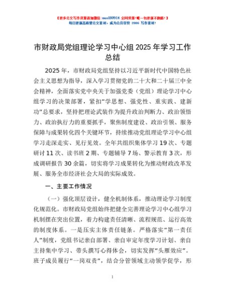 / 市财政局党组理论学习中心组2025年学习工作总结