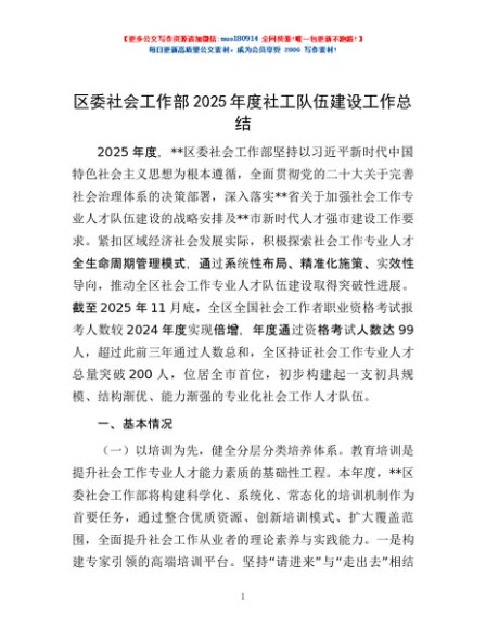 / 区委社会工作部2025年度社工队伍建设工作总结