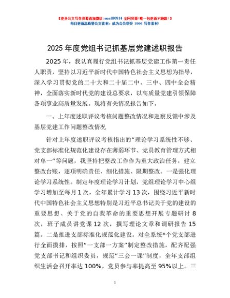 / 2025年度党组书记抓基层党建述职报告