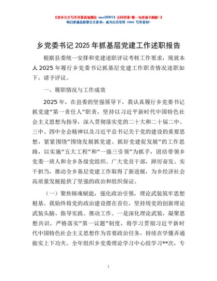 / 乡党委书记2025年抓基层党建工作述职报告