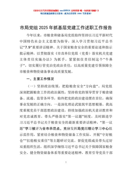 / 市局党组2025年抓基层党建工作述职工作报告