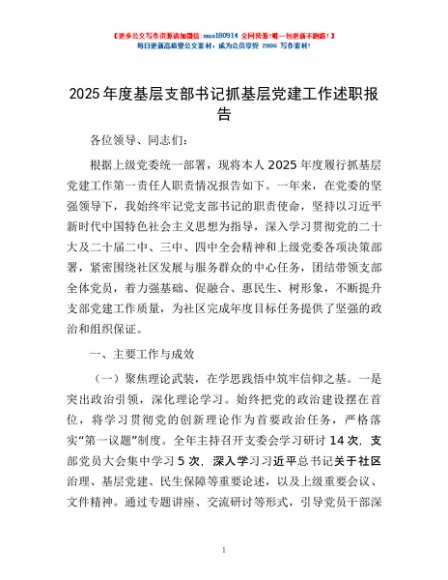 / 2025年度基层支部书记抓基层党建工作述职报告