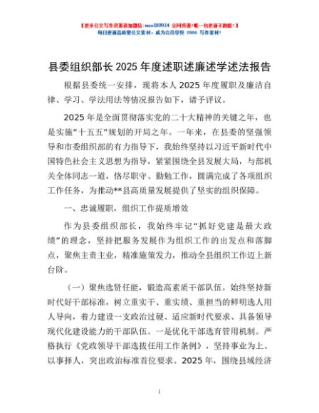 / 县委组织部长2025年度述职述廉述学述法报告