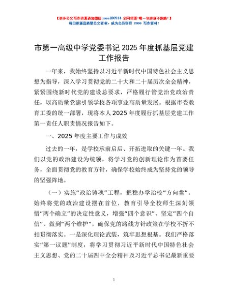 / 市第一高级中学党委书记2025年度抓基层党建工作报告