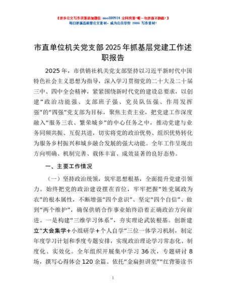 / 市直单位机关党支部2025年抓基层党建工作述职报告