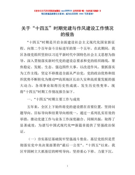 / 关于“十四五”时期党建与作风建设工作情况的报告
