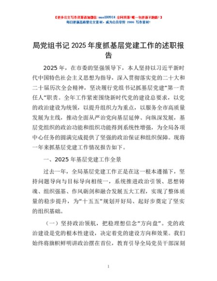 / 局党组书记2025年度抓基层党建工作的述职报告