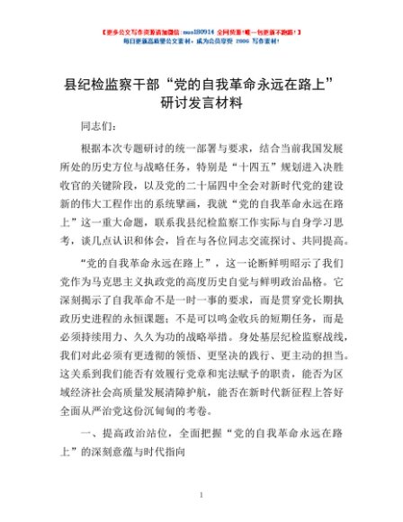 / 县纪检监察干部“党的自我革命永远在路上”研讨发言材料