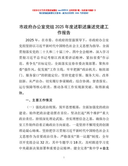 / 市政府办公室党组2025年度述职述廉述党建工作报告