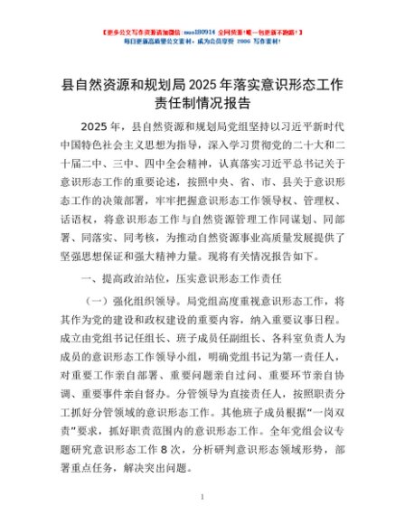 / 县自然资源和规划局2025年落实意识形态工作责任制情况报告