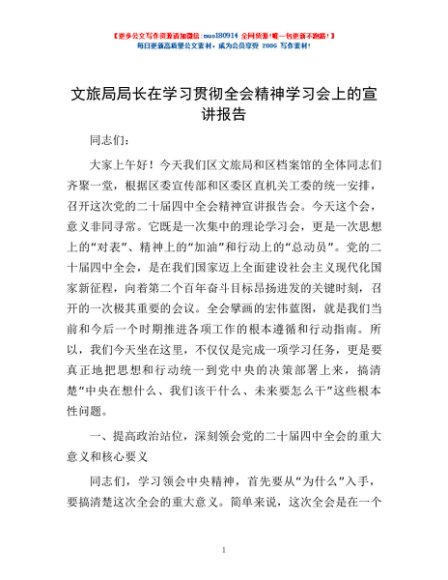 / 文旅局局长在学习贯彻全会精神学习会上的宣讲报告