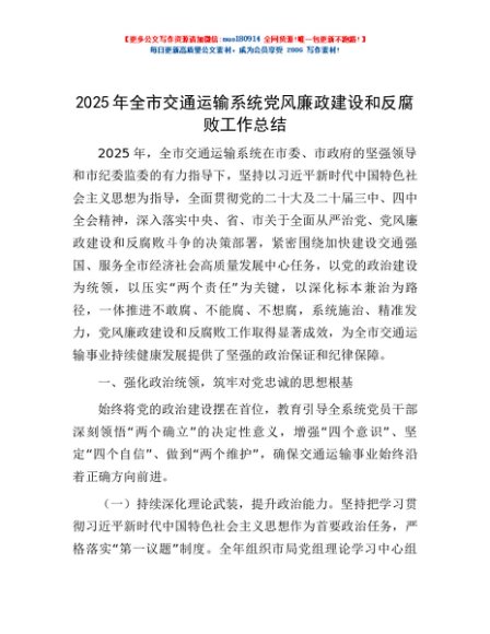 / 2025年全市交通运输系统党风廉政建设和反腐败工作总结