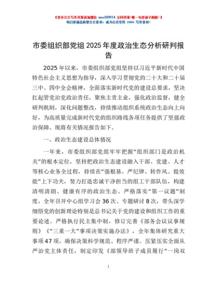 / 市委组织部党组2025年度政治生态分析研判报告